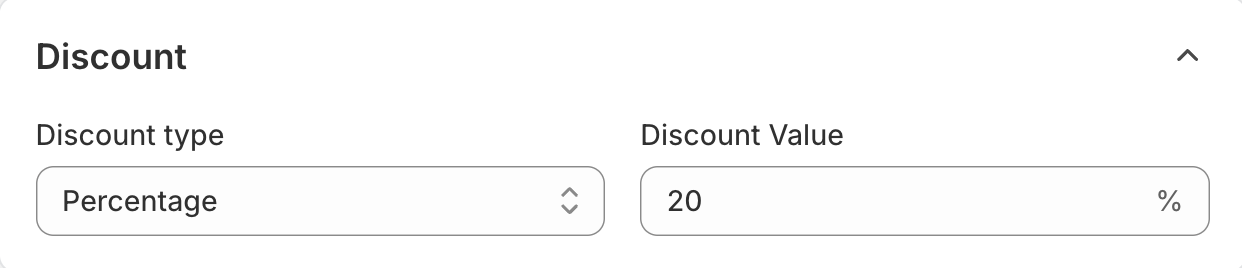 - Discount type: Percentage (%), Fixed Amount ($), or Fixed Price (set total price).
