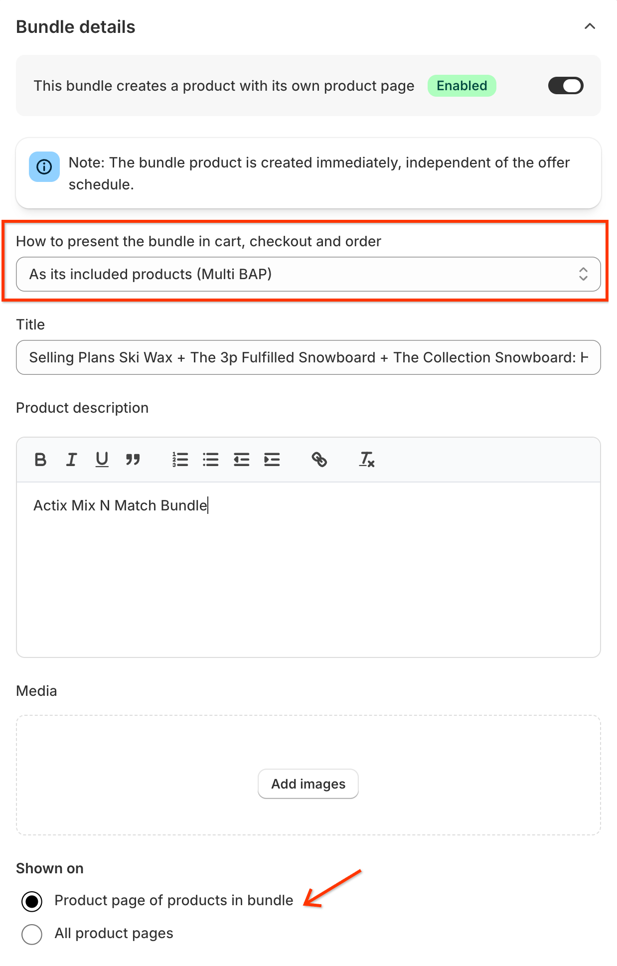 Configure the product page details for your bundle.