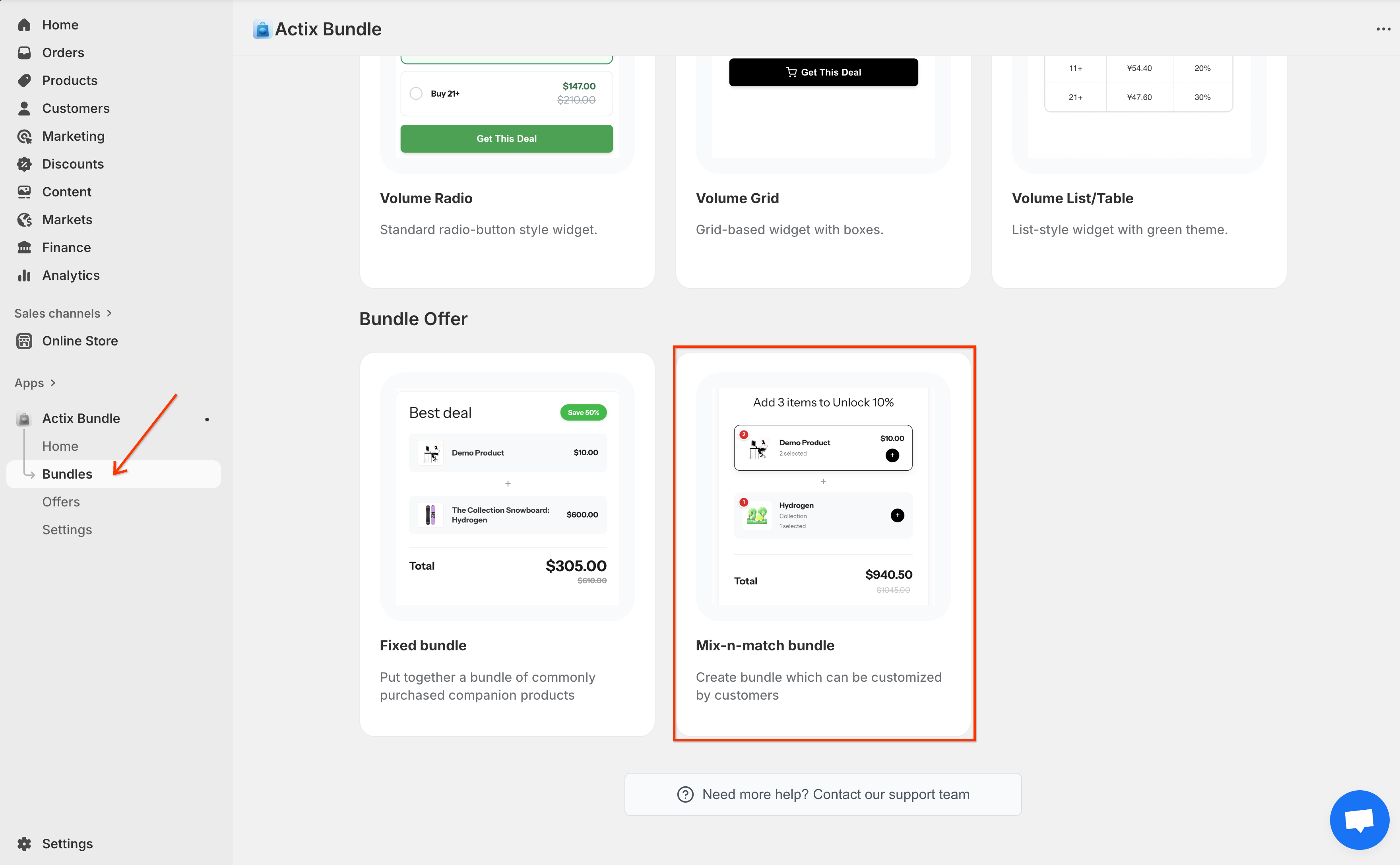 Go to the Actix Bundle dashboard, click on the Bundles tab on the left sidebar and select the Mix-n-match bundle option.