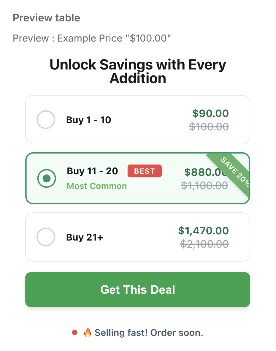 - Highlight: Mark a range as "Best Value" to highlight it on the storefront.